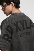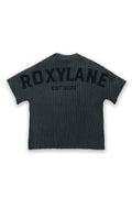 Crafted from ROXYLANE’s signature ribbed fabric, RX Slatecore goes through a multi-stage dyeing process that gives each piece its unique depth and tone. First, the garment is dyed deep black, then washed to achieve a naturally worn-in look. A ROXYLANE emblem is placed at the back before the final stage — where the piece is acid-washed.