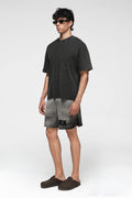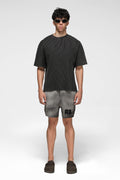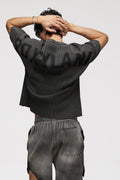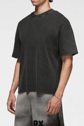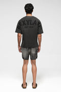 As the rest of the garment fades into a soft vintage grey, the area beneath the emblem retains its rich tone — leaving behind a tone-on-tone branding reveal, not printed but earned through process.